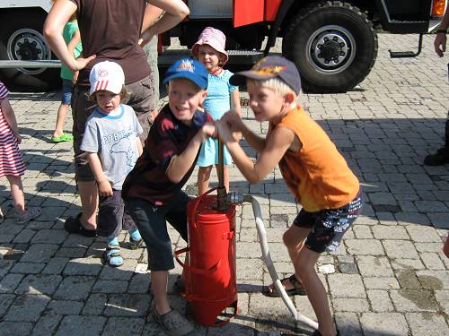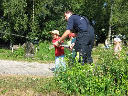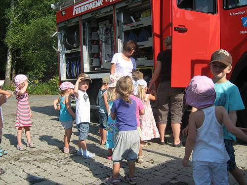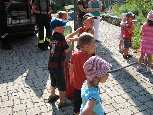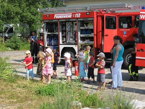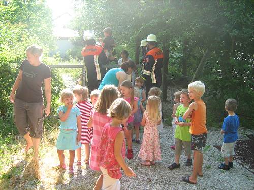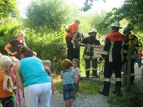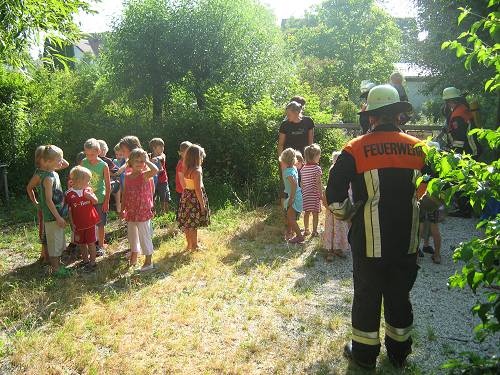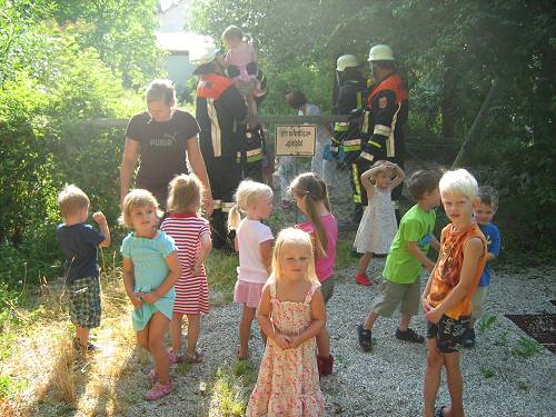 Garten. Bei der letzten Brandschutzunterweisung der Kindergärtnerinnen durch die Feuerwehr