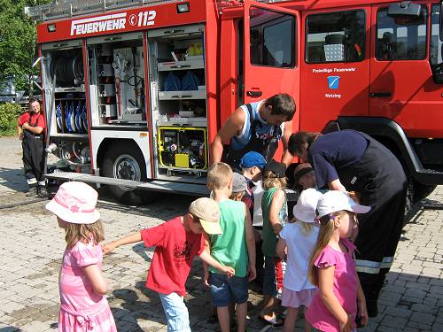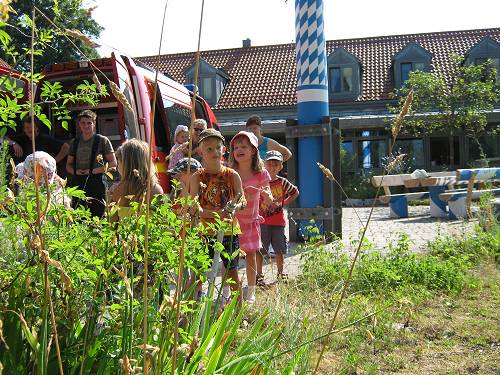 zwei Feuerwehrautos mit Blaulicht und Martinshorn vorfahren, war die Aufregung für die
