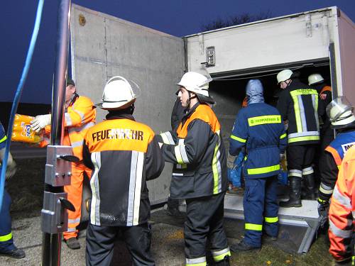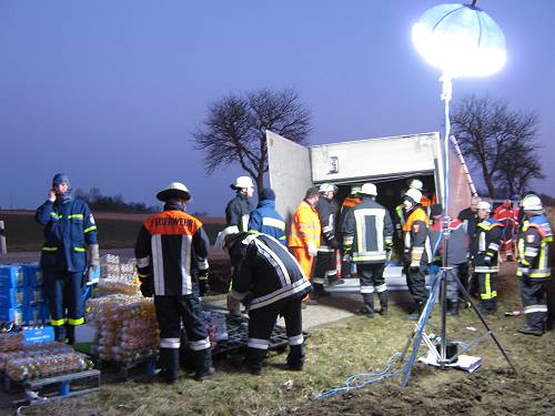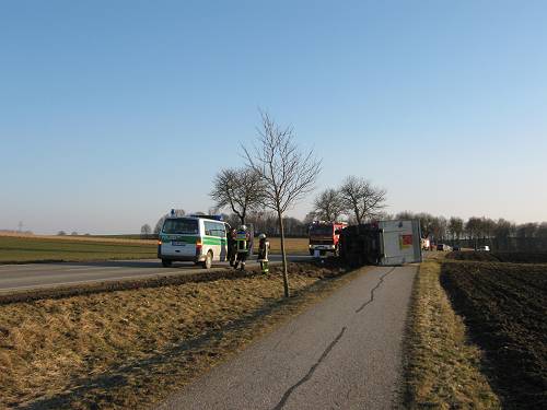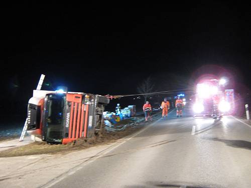 auf die ED 5 zwischen Notzing und Kempfing alarmiert. Ein LKW war wegen der