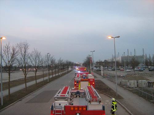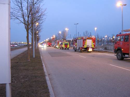 Feuerwehren der Umgebung an den Flughafen München alarmiert. Eine Maschine
