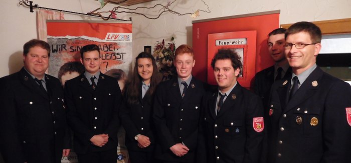 (von links) 1. Kdt. Michael Aigner, Martin Bohmann, Katharina Kolar, Johannes Baumgärtl