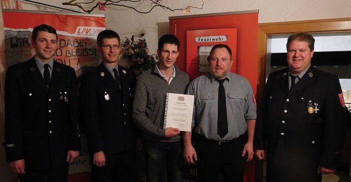 25 Jahre aktiver Dienst Stefan Maier, 1. Kdt. Michael Aigner