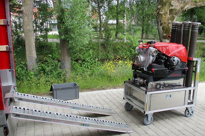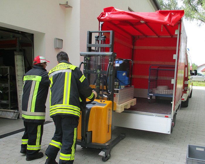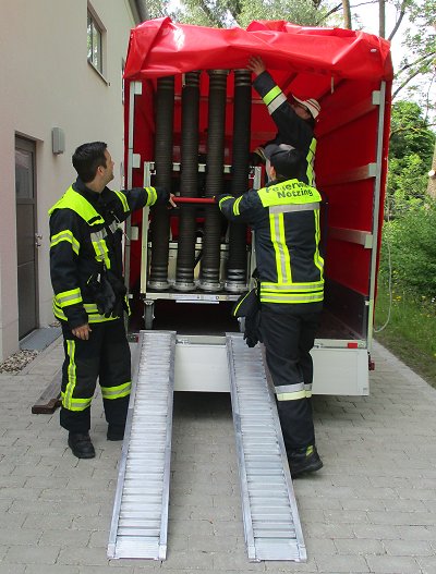 Beladung Rollwagen TS Rosenbauer Fox 3 mit Zubehör nach Norm.